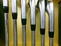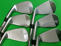 こちらはリシャフト品です。グリップは純正外で各番手とも摩耗がございます。フェース面は打球傷と当たり傷がございます。バックフェースは番手により当たり傷がございます。シャフトは各番手にこすれ傷がございます。
