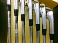 グリップは純正外で番手によりすこし摩耗がございます。フェース面は打球傷と当たり傷がございます。バックフェースは当たり傷がございます。シャフトは各番手に細かいこすれ傷がございます。