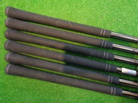 【値下げしました!】アイアン6本セット★細かい傷が見られますが、中古としては状態良好です。全番手、マスダグリップのスリックフィット装着です。※数値は5Iのものです(ロフト角・ライ角はカタログ値)。 |